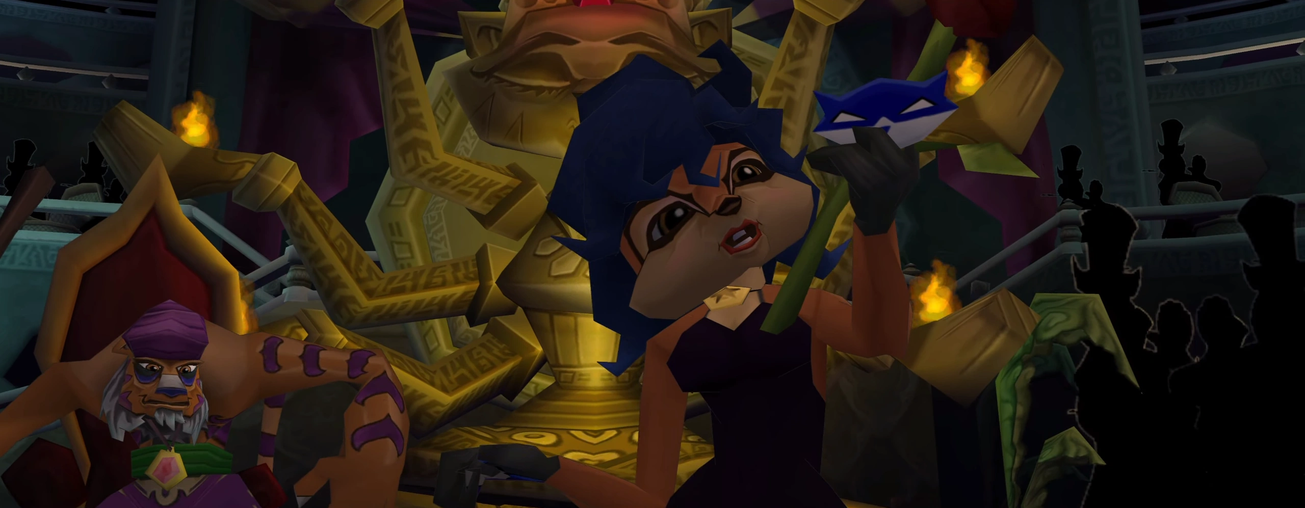 Sly approached the opening in the curtains and took photos of Rajan,[notes 1] the Clockwerk wings, a winch and the guests in order to plan and prepare the next set of jobs required to reach their final objective: steal the wings in front of a large crowd. The guests include the remaining Klaww Gang member, and undercover cops, the Contessa, Carmelita, and Neyla.