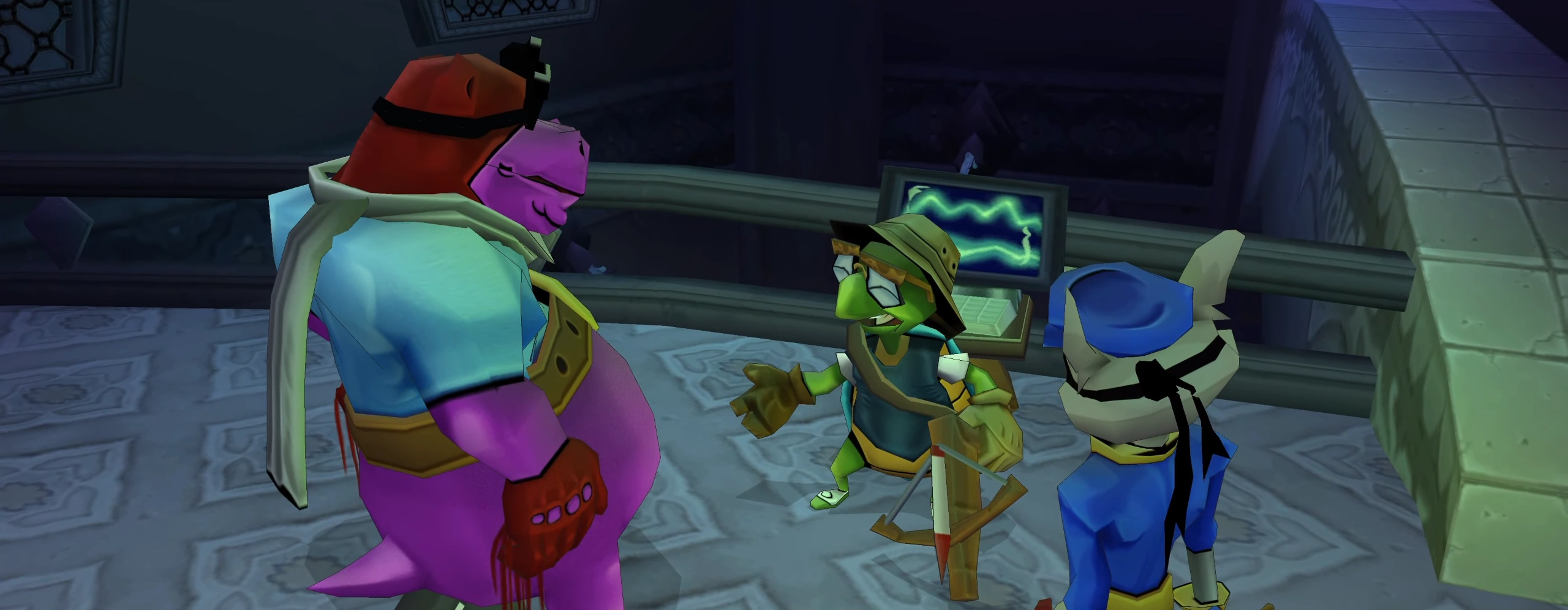 Bentley needed Sly to explore the palace and then find a way to get into the ballroom and see who was at Rajan's party. By climbing up to the balcony via some tree branches, Sly managed to get inside to a room with curtains.