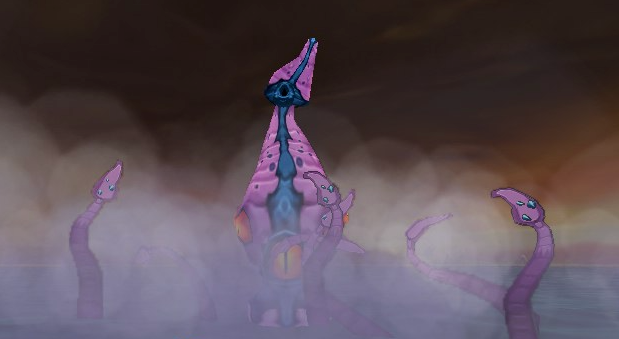 Crusher is a large squid that resides in the western waters of Blood Bath Bay. Based on the legendary Kraken, Crusher is a very large pink and blue squid with large orange eyes. It has about a dozen tentacles, which are strong enough to pull a boat underwater and crush people like insects. It also shoots volcanic bombs from the top of its head, which is another attack it uses.
