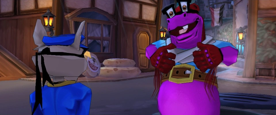 Before Sly leaves the hotel, the Black Baron walks into the lobby to welcome all of the pilots to another year of the ACES competition, especially the team leads by an old foe Muggshot. He then reminds everyone about the hijinks some teams pulled off in the past and that he will no longer tolerate them. He explains the rules of the hotel, specifically of the consequences for leaving the hotel after sunset. He then bides farewell and leaves the lobby. So does Sly, with Bentley warning him to be careful once outside.
