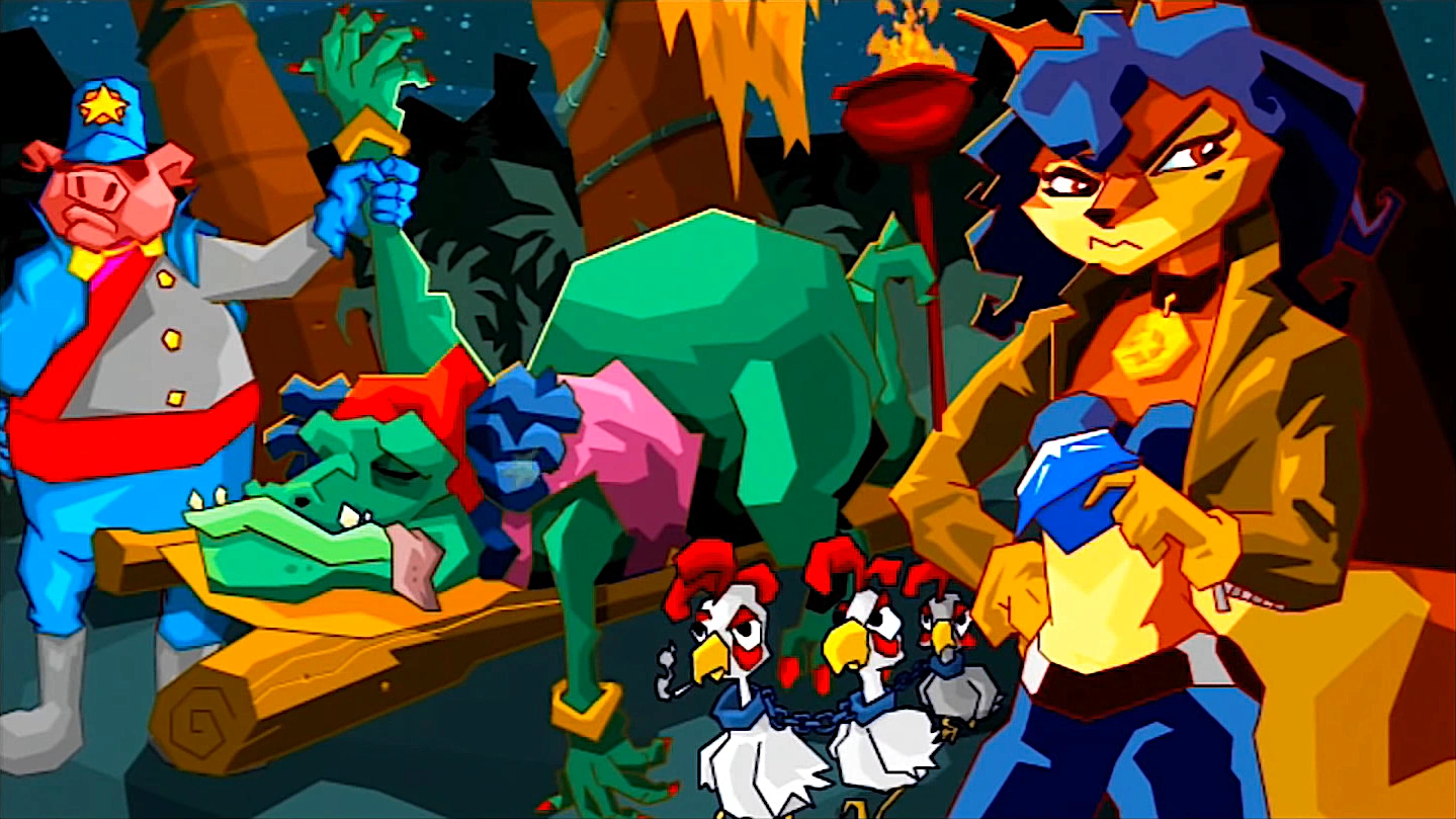 Sly faces off against the evil alligator in 3 rounds. Each involved the same process, in which Sly is to dodge the incoming projectiles of Mz. Ruby's voodoo magic as he attempted to make his way towards her. After being ultimately beaten in all 3 rounds, Mz. Ruby admits to Sly that he has some rhythm, but she warns him that it will not serve him good if he is to go after the next Fiendish Five member, the Panda King, as he is tough, with a capital T. However, Sly feels he can manage it, should the Panda King be anything like her and the previously defeated members.